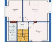 يشغل المطبخ 10 أمتار مربعة. م وله أبواب مشتركة مع غرفة المعيشة – هذا الخيار مناسب في منزل يتم فيه استقبال الضيوف غالبًا. مساحة غرفة المعيشة – 20 متر مربع. م هذا يسمح لك بوضع عدد كبير من الأثاث والعناصر الداخلية. يمكنك أيضًا الوصول إلى الحمام من الردهة. مساحتها ما يقرب من 1.5 متر مربع. م.