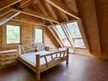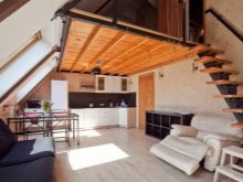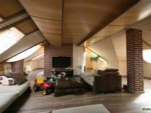 هناك نسخة أخرى غير مألوفة من العلية ذات المستويين. يتضمن المشروع وضع العديد من غرف العلية على مستويين ، وكذلك ترتيب الشرفة. تتطلب البنية الفوقية إنشاء هيكل خشبي معقد. إنها ، بدورها ، تتطلب الحساب الصحيح للحمل على العمودي.