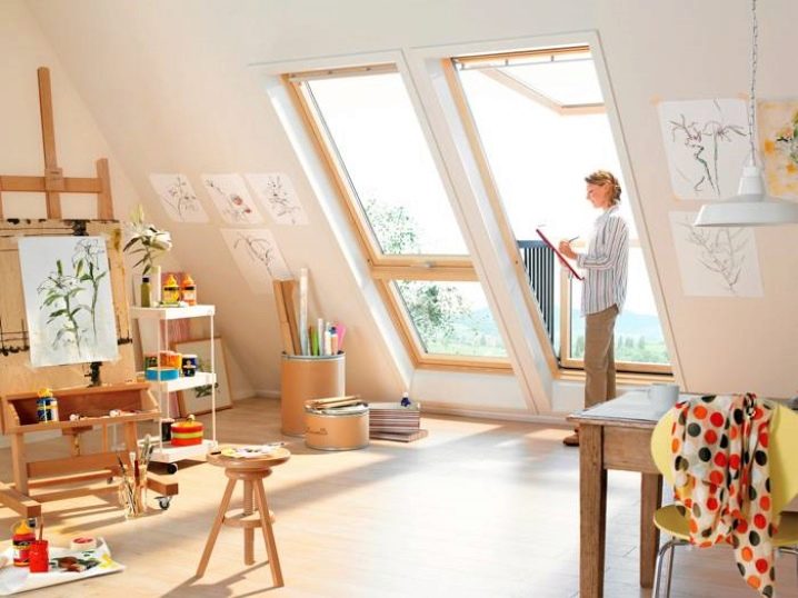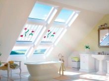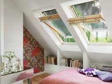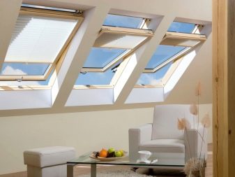 في هذه الحالة ، يجب أن يؤخذ الغرض الوظيفي من العلية بعين الاعتبار. للحصول على تركيبة بصرية أفضل ، يجب دمج مادة نافذة السقف مع مادة التسقيف..