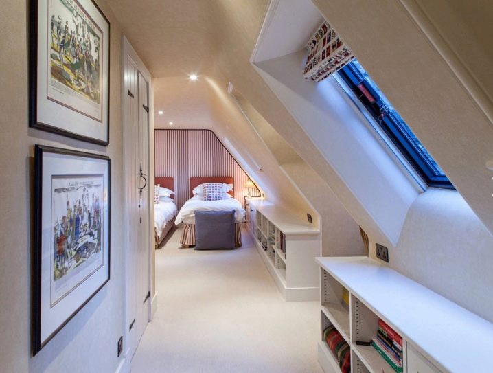 لن يكون ارتفاع مثل هذه البنية الفوقية كبيرًا. من المهم التفكير في مشروع العلية العجاف. المستوى المائل له حد أقصى وأدنى ارتفاع. بفضل التصميم الناجح ، يمكن للغرفة أن تتحول بسهولة إلى غرفة معيشة مريحة. من الممكن أيضًا أن تكون هناك خيارات أخرى لتقسيم المساحة تحت سقف مائل ، ولكن يجب أن يؤخذ ذلك في الاعتبار لا يمكن استخدام معظم المساحة الموجودة تحت السقف – ستكون منخفضة جدًا.