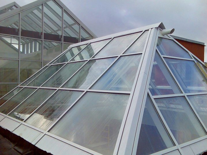 أحد متطلبات الهياكل المثبتة تحت السقف هو الوزن الخفيف. غالبًا ما تتكون من وحدة زجاجية مزدوجة من غرفة واحدة مع أربعة أنواع من الزجاج: المصقول بالحرارة (الزجاج المصقول) ، مع طلاء معدني شفاف ، مقسى وثلاثي. الزجاج المصقول بالحرارة يمنع التشويه البصري. يعكس الزجاج المعدني الأشعة فوق البنفسجية.