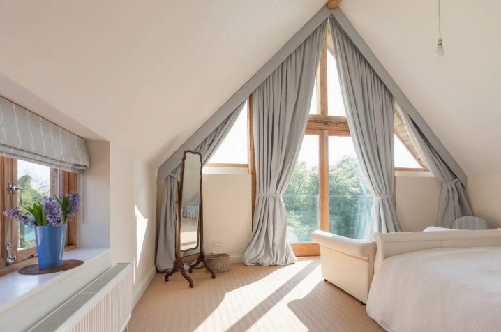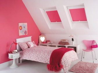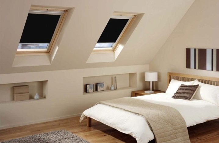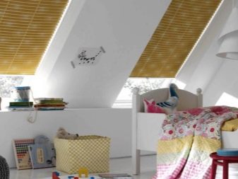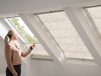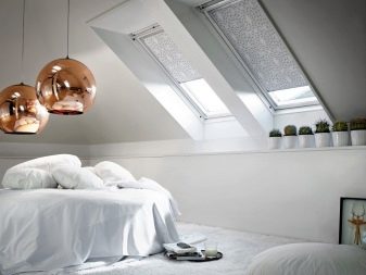 من المهم اتباع نهج دقيق لتصميم نوافذ السقف. الموقع على السطح ، والانفتاح على التأثيرات البيئية العدوانية يجعل متطلبات إضافية لتركيب الستائر ، واختيار العناصر الزخرفية: الستائر ، والستائر ، والستائر الدوارة.