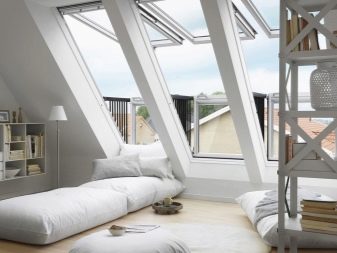 عند تصميم العلية ، يجب أن نتذكر ذلك ، وفقًا للخبراء, ستوفر فتحتان أو ثلاث فتحات للنوافذ على جوانب متقابلة من الحواف إضاءة أفضل من إحدى فتحات النوافذ الكبيرة في نفس المنطقة.