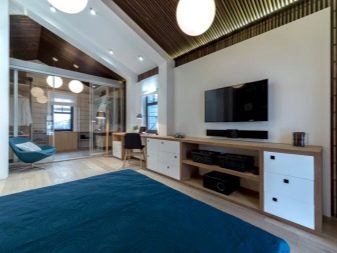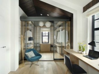 إذا سمحت المساحة ، فيمكن وضع غرفة تبديل ملابس في غرفة النوم. سيكون البديل الرائع لها هو خزانة ملابس كبيرة بزوايا مشطوفة..