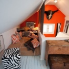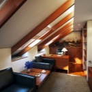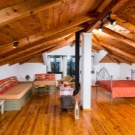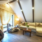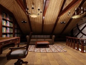 يمكنك إعادة تصميم نمط منزل في الجبال في غرفة العلية واختيار التصميم المناسب. المواد الطبيعية موضع ترحيب هنا. معظم الأسطح مصنوعة من الخشب. ستكون الأسقف المرتفعة مثالية ، وستكمل الجدران الخشبية ، ويبدو البلاط الشبيه بالحجر جيدًا على الأرض. سوف يتناسب وجود السجاد الصغير الناعم مع النمط العام. سيكون الموقد الصغير مناسبًا في الزاوية (مزخرف أو حقيقي ، الأمر متروك للمالك لاتخاذ القرار). سيتم تزيين هذه الغرفة بمدفأة مصممة بنفس الأسلوب..