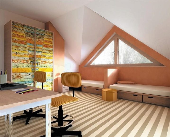 إذا لم تكن العلية مجهزة أثناء بناء المنزل وفقًا لجميع القواعد ، فيمكنك تحويل الجزء العلوي من المنزل إلى منطقة قابلة للاستخدام. أولاً ، من الضروري عمل عزل رئيسي للسقف باستخدام مواد خاصة.. يجب عمل نافذتين على الأقل. عند الانتهاء من العمل الرئيسي ، حان الوقت للتفكير في تصميم الغرفة ، اعتمادًا على الدور الذي ستلعبه (الحضانة أو الدراسة ، غرفة النوم أو غرفة المعيشة).