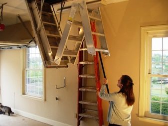 من الممكن شراء آليات قابلة للطي جاهزة لسلالم العلية. ولكن في الوقت نفسه ، يجب أن تأخذ في الاعتبار أحجامها بشكل صحيح بحيث تتلاءم مع شكل مطوي في فتحة السقف ، وتثبيتها بإحكام على الفتحة ، وعندما تتكشف تكون فقط ارتفاع الغرفة.