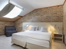 لا تحتاج هذه الغرفة إلى سقوف عالية ومساحة كبيرة – سرير كافي وطاولة سرير صغيرة وشمعدان جميل. إذا سمحت المساحة ، يمكنك إضافة خزانة ملابس ومنضدة للزينة..