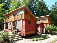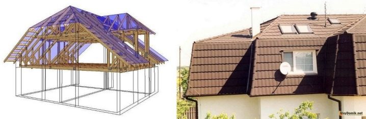 يبدو تصميم المبنى من الخارج غير قياسي إلى حد ما. نافذة كبيرة أو صغيرة مصنوعة في جدار العلية. هيكل السقف هذا هو الأرخص ، خاصة إذا كانت المسافة بين الجدران لا تتجاوز 4.5 متر..