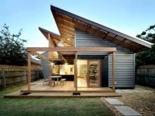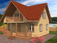 لا يسمح السقف المنحدر بزيادة المساحة فحسب ، بل يسمح أيضًا بالحصول على مساحة معيشة إضافية. يمكن أن يكون إما مطبخًا أو مرآبًا. المواد في هذا الإصدار خفيفة الوزن ، لكن لا يزال يتعين عليك حساب الأساس.