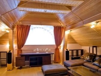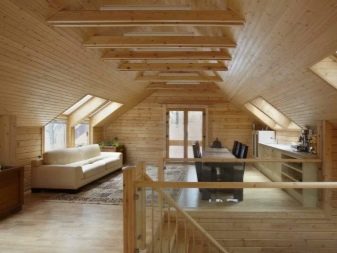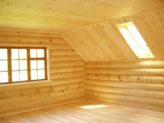 بالنسبة إلى تشطيب أرضية العلية في المنزل أو الكوخ الصيفي ، والذي يبدو ظاهريًا مثل المباني الخشبية ، فيمكن أن يكون مصنوعًا بالكامل من الخشب أو يتم استكماله ببساطة بإدخالات مناسبة.