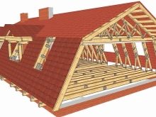 - خط متقطع. يتكون أيضًا ما يسمى بالسقف المنحدر من منحدرين لهما منحدرات مختلفة. تتيح لك هذه الغرفة توفير المال عند بناء جميع الجدران. ومع ذلك ، فإن نظام الجمالون في هذه الحالة له هيكل أكثر تعقيدًا قليلاً. غالبًا ما يستخدم الخيار عندما تمتد العوارض الخشبية إلى ما وراء سطح الجدران – وهذا يساعد على حماية الوحدة المجاورة للسطح من هطول الأمطار المختلفة. غالبًا ما يستخدم هذا الخيار للبناء الذاتي..