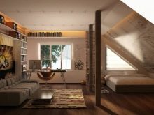 يمكن أن تكون العلية ، كما تظهر الممارسة ، غرفة ليس فقط لغرض واحد. إذا كانت الغرفة بها مساحة كبيرة ، فمن السهل تقسيمها إلى مناطق..