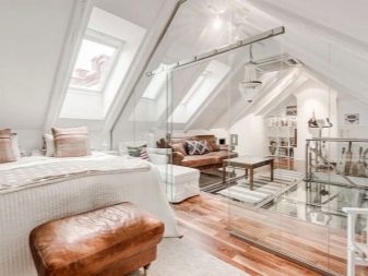 ومع ذلك ، يجب أن نتذكر أنه ليس من الضروري زيادة تحميل الأرضية بشكل كبير ، وكذلك تقسيم المساحة ، وإلا ستتحول الغرفة من العلية إلى قفص.