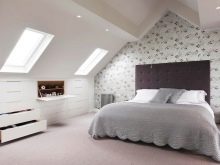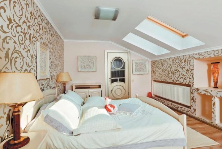 تحتوي الغرفة ذات السقف المنحدر في العلية على العديد من الخيارات للترتيب ، فقط السقف المسطح غير مقبول.