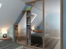 العيب الوحيد هو قطع المساحة الخالية من جميع الجوانب ، والعديد من المالكين لا يحبون هذا العيب. لمنع تفريغ هذه المناطق ، غالبًا ما تكون مجهزة بخزائن أو حتى مخازن. يعتمد موقع النوافذ على زاوية الميل في الغرفة – يمكن أن تكون في الأعلى أو في المنتصف مباشرة.