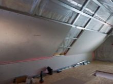 - حائط الجبس. يستخدم العديد من أصحاب الحوائط الجافة لتزيين العلية. تتميز بمزايا كونها غير قابلة للاحتراق ، وسهلة التركيب ، وليست باهظة الثمن. يمكن استخدامه لتسوية كل من سطح الجدران والسقف..