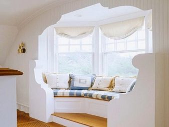تصبح نوافذ الخليج في كثير من الأحيان المكان الأكثر رومانسية في المنزل ، حيث يسهل التقاعد والابتعاد عن الوجود الدائم لأشخاص آخرين. يُنصح ليس فقط بوضع أريكة صغيرة في عنصر دائري ، ولكن أيضًا منضدة قهوة ، تكملها العديد من الكراسي المريحة. بغض النظر عما إذا كانت ستكون هناك نافذة كبيرة أم لا ، فأنت بحاجة إلى تحديد كيفية الحصول على أرضية من نوع العلية.