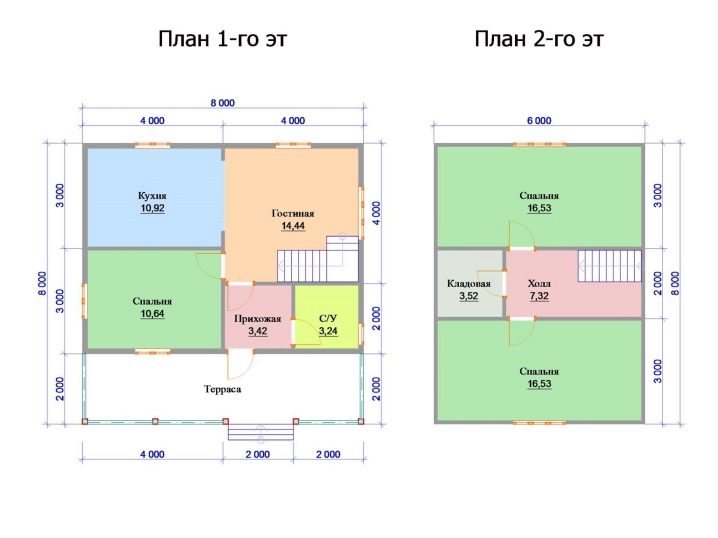 اختيار منزل من طابق واحد 8×8 مع العلية ، حتما تحتاج إلى التعامل مع تصميم مبسط. لكن هذه ميزة إلى حد ما ، لأن سرعة البناء تزداد ، وستكون تكاليف التشغيل أقل. بالإضافة إلى ذلك ، يمكن جعل الأساس خفيفًا نسبيًا ويمكن تقليل الحاجة إلى أعمال الحفر. يمكن وضع وحدة صحية في الطابقين الأول والثاني..
