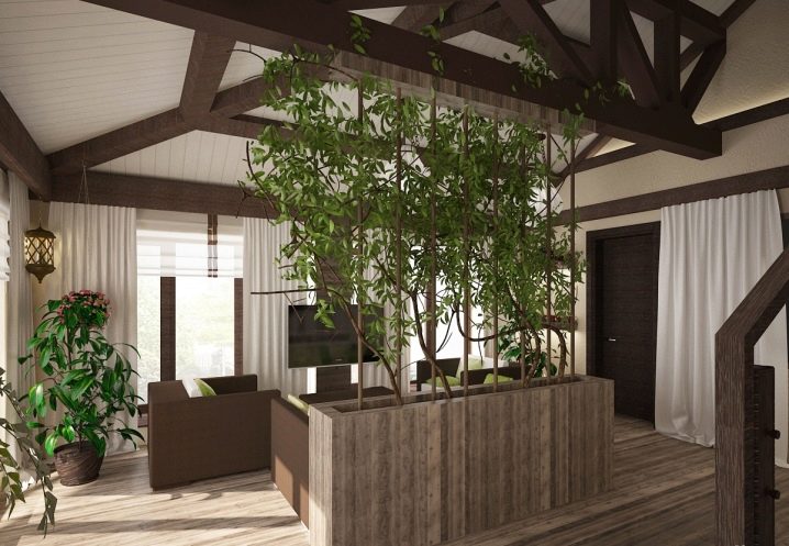 عندما تكون مثبتة بالفعل ، لا يمكنك تجاهل هذه اللحظة. إذا كانت العوارض الخشبية تقسم الغرفة بالفعل إلى مناطق منفصلة ، فلا فائدة من محاربتها – فمن الأفضل محاولة التغلب عليها. لذلك ، من الممكن استخدام هذه التفاصيل لتشكيل الميزانين أو لتقسيم المناطق بشكل كامل. إذا كان هناك دش أو حمام في العلية ، فأنت بحاجة إلى الاهتمام بتركيب نوافذ مقاومة للرطوبة وتحسين التهوية..