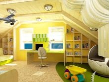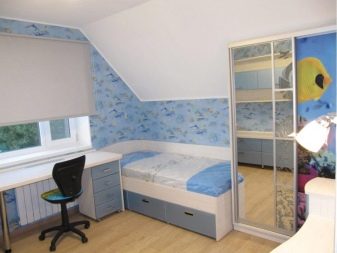 عند التخطيط لغرفة ، من الضروري تقسيمها إلى مناطق مناسبة.. في طفل الطفل ، يجدر تجهيز منطقة للنوم والدراسة واللعب. حتى إذا كانت الغرفة في الطابق العلوي ليست واسعة بما يكفي ، يجب أن تحتوي الغرفة على سرير وطاولة دراسة وخزانة ملابس وأدراج (أو طاولات بجانب السرير) للعب الأطفال. من الأفضل وضع خزانة ملابس ورف للأحذية عند مدخل الغرفة..