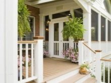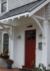 مع مظلة. أبسط أنواع الخطوات المجاورة للباب الأمامي. غالبًا ما يتم استكمال خيارات التصميم هذه بالواقي العلوي فقط ، ولكن لا يتم إغلاقها بأي شيء سواء على الجانبين أو في المنطقة المقابلة لورقة باب المدخل – الخيارات مختلفة. في كثير من الأحيان ، تكون المظلة كبيرة جدًا بحيث تغطي الدرجات. الشرفة المغطاة في كثير من الحالات على الأقسام الجانبية مجهزة بدرابزين وليس بجدران فارغة.