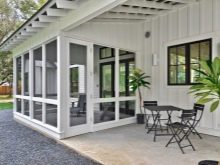 - الشرفة الشرفة. مبنى ذو تصميم أكثر جاذبية وصلابة. غالبًا ما يتم تنفيذه بالزجاج. على أراضي الشرفة الأرضية ، ليس فقط المدخل ، ولكن أيضًا منطقة ترفيهية للضيوف والأسر المجهزة. إنها مريحة للغاية ، على الرغم من صعوبة تنفيذها..