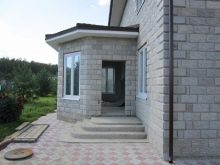 - قالب طوب. تبدو هياكل الطوب بشكل أفضل جنبًا إلى جنب مع المنازل الخاصة المبنية من الطوب ، وكذلك المساكن ، التي تم استخدام انحيازها لتزيين الواجهات. كما أن المادة متينة ومقاومة للاهتراء ، وتبدو جذابة من الناحية الجمالية.
