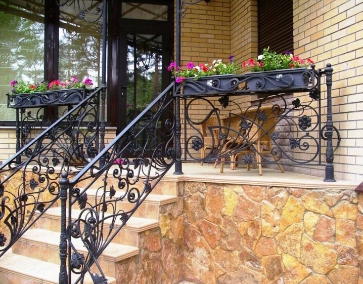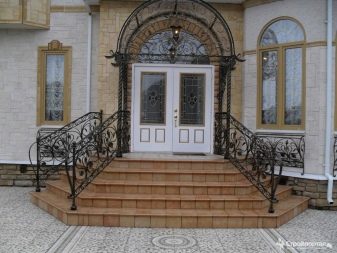 رواق من الحديد المطاوع ، مزين وفقًا لجميع القواعد ، أي مزود بدرابزين وواقي ، يعطي على الفور فكرة عن أصحاب المنزل: ذوقهم ، وتربيتهم ، ورفاههم ، ومستوى عالٍ المعيشة. يمكنك اختيار الرسم المطلوب في الوكالات الخاصة ومعارض الماجستير والإنترنت. يمكنك أيضًا تقديم طلب هناك ، ومناقشة جميع الفروق الدقيقة.