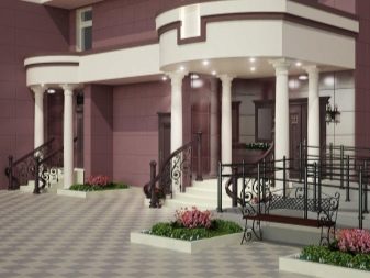 بالنسبة لمراكز الدولة والمؤسسات العلمية والبلدية ، يتم تطوير السلالم وفقًا لأسلوبها.. تؤكد مثل هذه الإنشاءات في الشارع على مستوى هيئة الدولة. في هذه الحالة ، يمثل الدرابزين المصنوع من الحديد المطاوع مع المظلة سمة فنية إلزامية عالية للمبنى مع عناصر تؤكد على نطاق نشاطه..