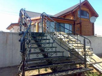 تكتمل خصوصية وجمال المظهر الخارجي للمنزل بواجهة جميلة بدرج من الحديد المطاوع. هذا الهيكل عملي ودائم ، لأنه لا يفسد ، ويشوه بعناية مناسبة..