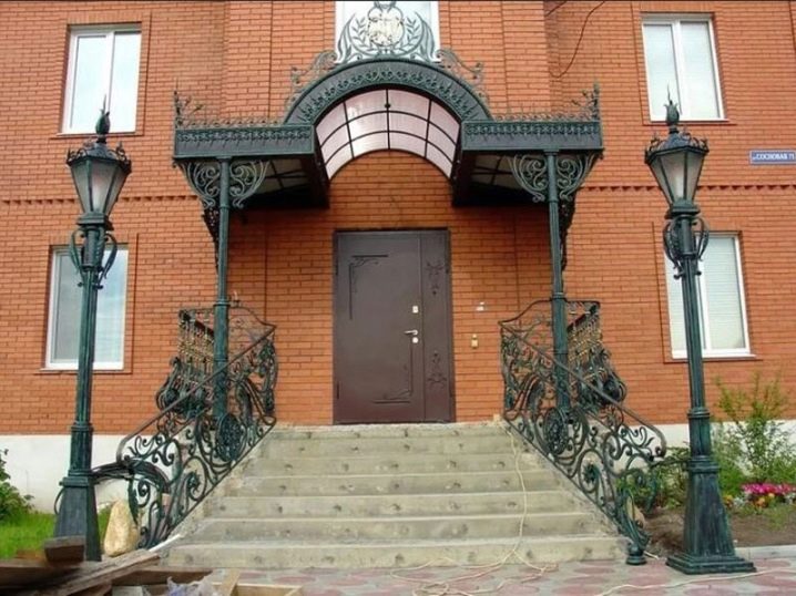 من أجل تشغيل لا تشوبه شائبة ، يتم تركيب منتج مثل الشرفة المزورة من أجل السلامة ليس فقط مع الدرابزين ، بل يتم تركيبه جنبًا إلى جنب مع مظلة وسياج. يجب أن تكون جميع عناصر هيكل الشرفة متسقة بنفس الأسلوب. في البناء والهندسة المعمارية ، يسمى هذا المجمع بمجموعة المدخل..