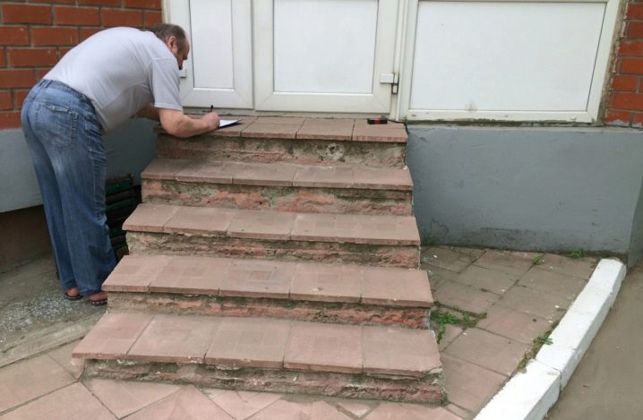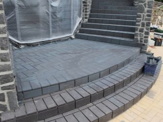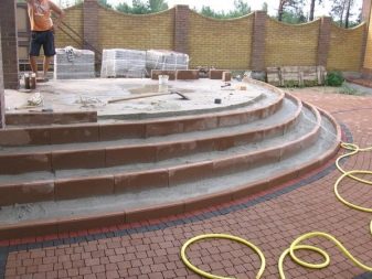 في حالة وجود عدد قليل من الخطوات على الحواجز ، يجب وضع حواجز حجرية بتثبيت الملاط الأسمنتي. غالبًا ما يقوم البناة المحترفون بإصلاح الأساس الخرساني بإطار معدني إضافي ، ويضعون مواد التكسية الأرضية تحت وسادة من الرمل والحصى. كل فقي مملوء بالرمل ، مبلل ومستوي ، ثم يصطف بألواح.