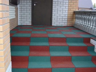 - بلاط المطاط الفتات – نوع خاص من منتجات الرصف. إنها مادة مبتكرة ذات أداء عالٍ ، والتي تشمل فتات المطاط ومعدلات خاصة وأصباغ وغراء بوليمر. المزايا – الانزلاق المنخفض ، امتصاص الصوت ، عمر الخدمة الطويل. الغطاء مريح في الاستخدام لأنه ناعم ومرن. بالمناسبة ، المرونة في نفس الوقت هي عيب للمادة ، لأنها عرضة للإزاحة..