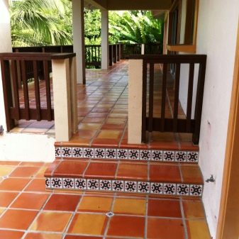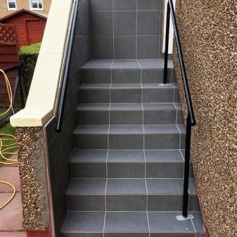 تعتبر ألواح الرصف ككسوة للسلالم أو الشرفات ، خلافًا للاعتقاد الشائع ، آمنة تمامًا وتبدو رائعة أيضًا. ولكن لهذا ، يجب اختياره بشكل صحيح وفقًا لنوع السطح وتجهيزه بطبقات خاصة.. تحتوي هذه النهاية على بعض الميزات التي يجب أن تكون على دراية بها عند اختيار البلاط للخطوات الخارجية..