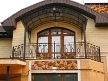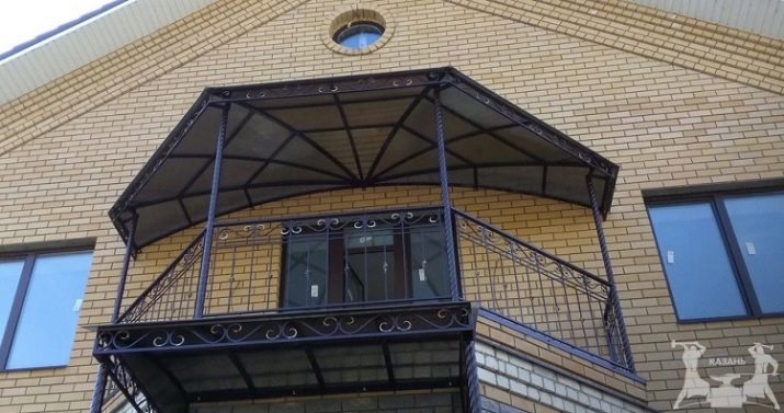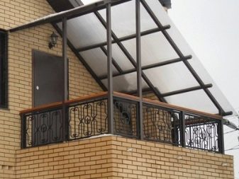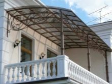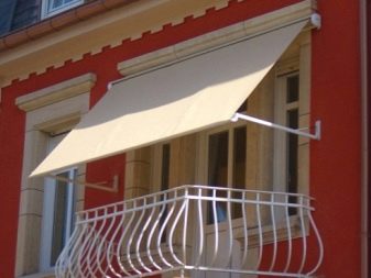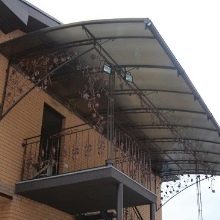 في الممارسة العملية ، يتم استخدام طريقتين لربط مثل هذه المظلة: على الحائط نفسه أو على الدعامات. يسمح لك الخيار الثاني بتثبيت ، بالإضافة إلى الواقي ، حماية جانبية على شكل دروع مصنوعة من الخشب أو الزجاج أو مقطع جانبي معدني ، وترك الجزء الأمامي مفتوحًا.