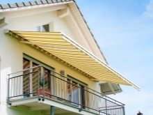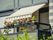 يتم تثبيت الستائر ذات النغمة الواحدة ليس فقط فوق الشرفة المفتوحة ، ولكن أيضًا فوق لوجيا ، ومع ذلك ، فإن عرضها أصغر بكثير من الشرفة. الغرض منها هو نفسه – الحماية من هطول الأمطار. إذا كان لوجيا مفتوحًا ، فسيقوم الحاجب بتوجيه تدفق المطر في الاتجاه المعاكس ، مع الحفاظ على الأرضية جافة. إذا كان لوجيا مزججًا ، فسيحمي النوافذ من تيارات المياه القوية على الزجاج.