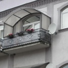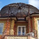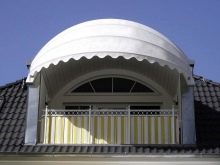 هذا الحاجب له شكل قبة نصف كروية وهو الأكثر صعوبة في الأداء. على الرغم من ذلك ، فإنه يؤدي وظائفه الزخرفية والحماية بشكل مثالي. يمكن أن يكون للهيكل أعماق مختلفة من القبة ، ثم يجب أن يكون منحدره أوسع قليلاً من الشرفة أو يتجاوز حدوده بشكل كبير. لا تخاف الشرفة ذات القبة المظلة من الرياح أو هطول الأمطار.