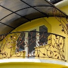 أفضل مادة للقبة هي البولي كربونات الملون ، للأعمدة – الهياكل المعدنية الملحومة أو الحدادة. في أغلب الأحيان جدار جبل.