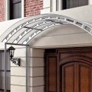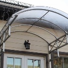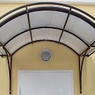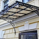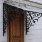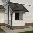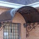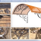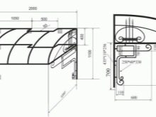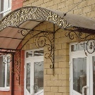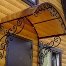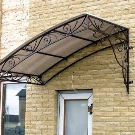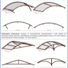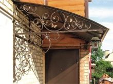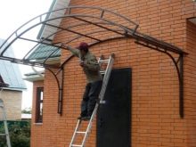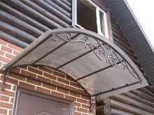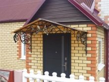 فوق مدخل المنزل ، لا يمكنك تثبيت منحدر واحد فحسب ، بل يمكنك أيضًا تثبيت حاجب من منحدرين. تبدو هذه المنتجات أكثر جاذبية. بالإضافة إلى ذلك ، فإن حاجب المنحدر المزدوج يحمي بشكل أفضل من هطول الأمطار ، لأنه “يغطي” الجوانب أيضًا. مثل هذه المباني شائعة أيضًا ، والعديد من أصحاب المنازل يصنعونها بأيديهم..