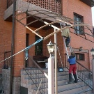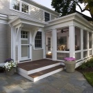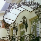 إذا كان من المخطط تركيب حاجب مقوس جميل فوق شرفة منزل من طابق واحد ، فسيتعين القيام بذلك بحيث تبرز أقسام حافة الأعمدة المتدلية فوق الدرجات بمقدار 20-30 سم على الأقل.