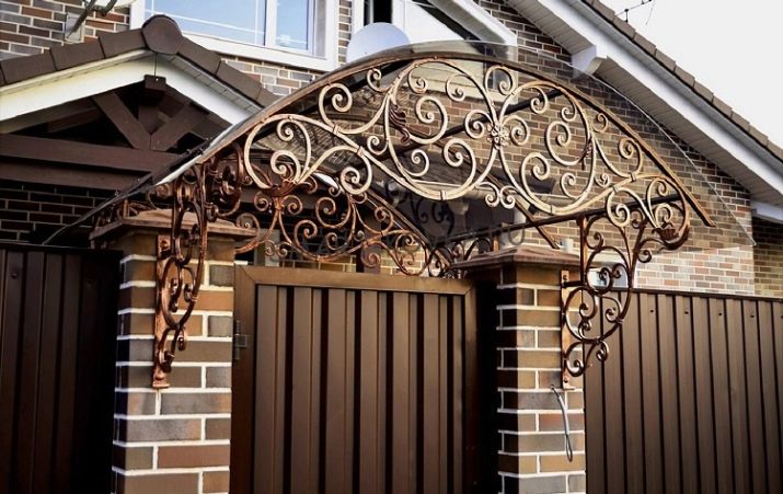 في معظم الحالات ، يتم تثبيت أنواع أقنعة معدنية فوق الباب الأمامي. فهي موثوقة للغاية وقوية ودائمة. لا يحتاجون إلى صيانة معقدة ، كما هو الحال مع الهياكل الخشبية. تبدو العديد من المنتجات المعدنية محلية الصنع جذابة للغاية وتزين واجهات المنازل بشكل فعال.. ضع في اعتبارك كيفية عمل هياكل الستائر المعدنية وتثبيتها بشكل صحيح.