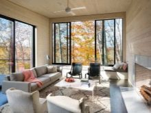 تبدو خيارات التصميم للشرفة الأرضية المدمجة ذات النوافذ الكبيرة مبدعة ومثيرة للإعجاب.