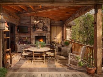 - الشرفة – منطقة لا يجب أن تقف بجانب المنزل. إنها مساحة مفتوحة مع مظلة تحمي من أشعة الشمس أو المطر. يتم استخدامه فقط في الموسم الدافئ ، حيث لا يوجد زجاج.