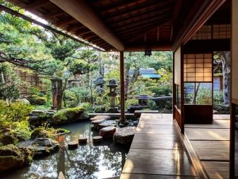 سيبدو النمط الياباني مثيرًا للإعجاب بشكل خاص إذا قمت بإضافة نباتات آسيوية مختلفة ، ورتبت أشكالًا للموضوع المقابل.