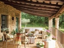 غالبًا ما تنخفض متطلبات التصميم من أصحاب البيوت الصيفية أو المنازل الخاصة إلى الصياغة – لجعلها جميلة. في الواقع ، هناك عدد غير قليل من خيارات التصميم لشرفة مع تراس. يوصى بالالتزام بالتصميم بنفس أسلوب المنزل الريفي..