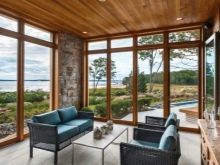 الخيار المغلق أغلى. أثناء البناء ، من الضروري بناء جدران كاملة. الشرفة المغطاة مصنوعة من الزجاج. من المهم الانتباه إلى الإطارات. من الأفضل جعلها مزدوجة بدلاً من واحدة. هذا الأخير سيسمح بدخول الهواء البارد إلى الغرفة في الشتاء. تتيح الإطارات المزدوجة استخدام الغرفة الفسيحة الناتجة على مدار السنة. إطارات ثلاثية الجوانب فعالة المظهر.