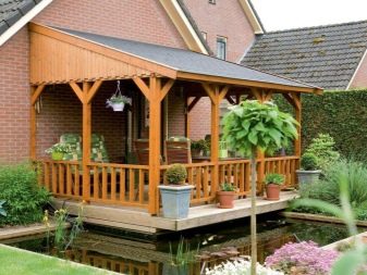 يمكن توصيل الشرفات الأرضية بمنزل خشبي ومنزل من الطوب. غالبًا ما يكون لديهم سقف منفصل.. هذه المشاريع مناسبة لكل من البيوت الصيفية والمنازل الخاصة. يمكن صنعها بأنماط مختلفة من مواد مختلفة..