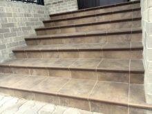 تختلف أنماط التمديد ، كما هو الحال مع الانتهاء من الخطوات.. يمكن أن تكون كسوة كلاسيكية مصنوعة من البلاط وحده. بالإضافة إلى ذلك ، قد يشتمل التصميم على استخدام عناصر مبلطة خاصة (درجات ، رافعات ، قواعد ، حواجز ، زوايا ، عتبات). في هذه الحالة ، يمكن أن يكون التصميم الرئيسي أحادي اللون ، ومزينًا بحدود بنمط..