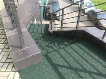 البلاط المطاطي آمن قدر الإمكان ، فهو مصنوع من نفايات الإنتاج. إنه يشبه المطاط ، وله معامل مضاد للانزلاق عالي ومرونة قصوى.. يعتبر من السهل العناية به وتنظيفه. يتم توفيره للسوق بألوان مختلفة ، ولا يزول أثناء الاستخدام. إنه ينطوي على خطوات مواجهة ومنطقة صغيرة بالقرب من الباب الأمامي.